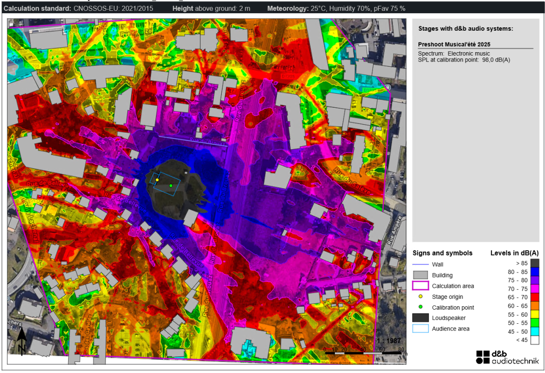 Cette démarche complète nous permet d’apporter une véritable solution de conseil et des préconisations techniques concrètes pour quantifier, maîtriser et réduire l’impact sonore d’un évènement.
